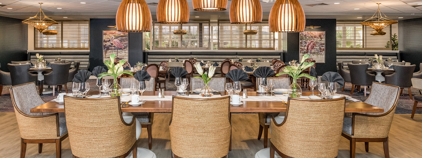 At Village On The Isle, dining is more than just a meal — it’s a time-honored tradition of coming together, much like families have done for generations. Our comfortable yet sophisticated dining rooms serve as the perfect backdrop for sharing a delicious meal while you catch up with friends. It’s as much a social occasion as it is a dining one.